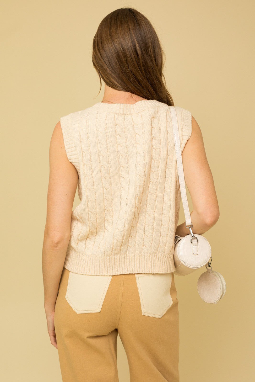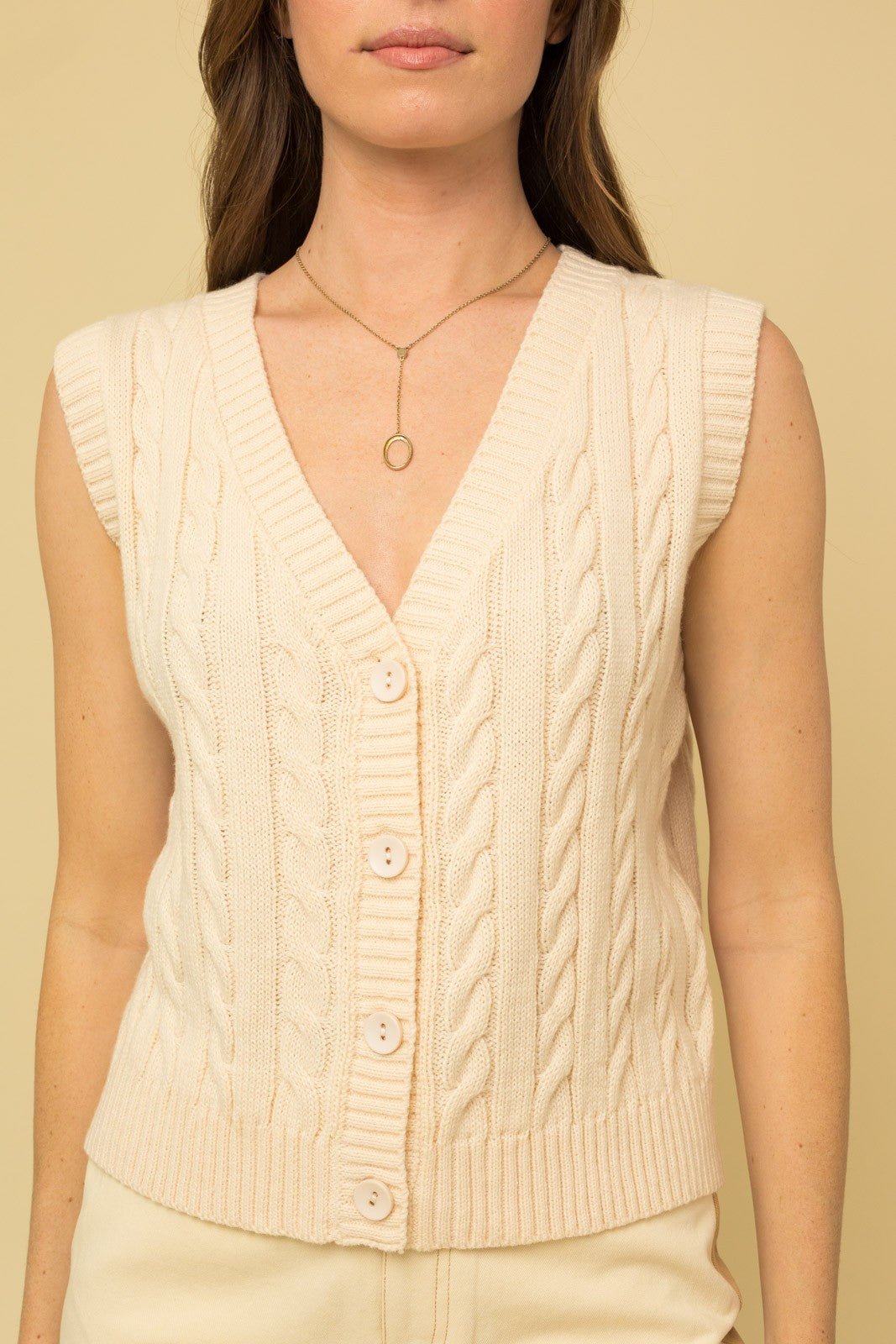 cable sweater vest top with front buttons.
