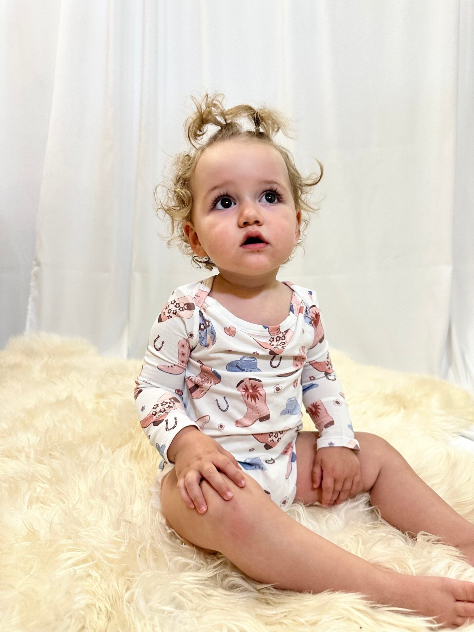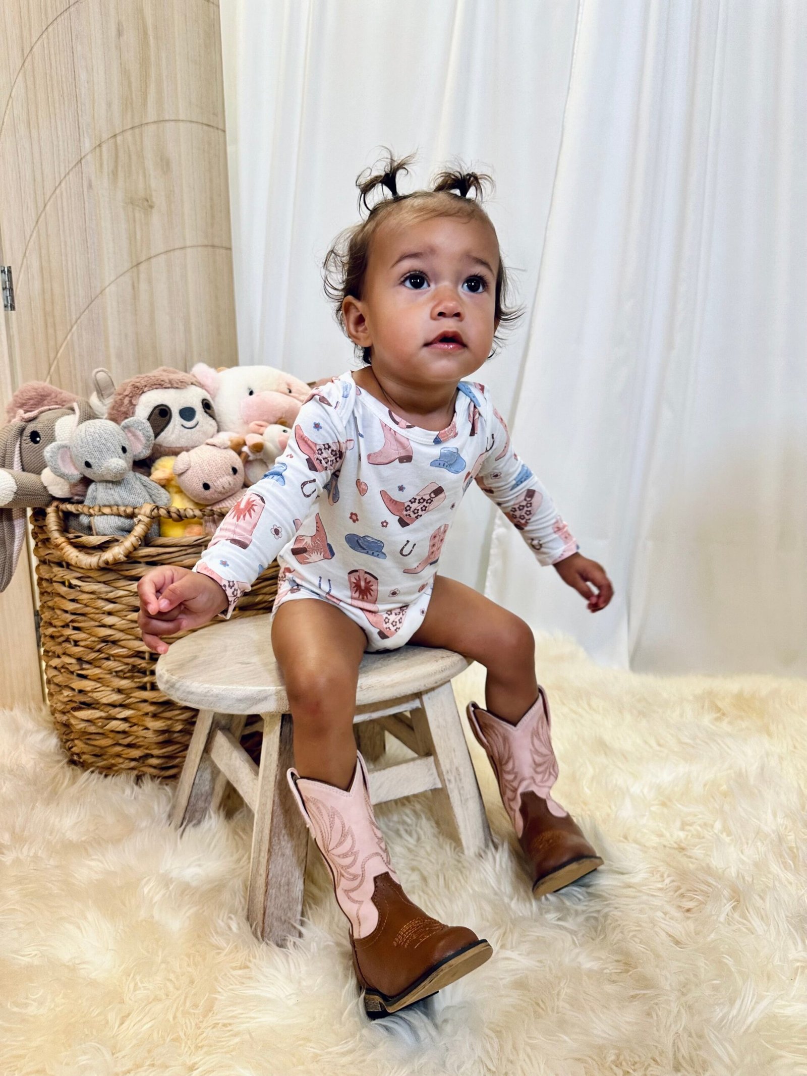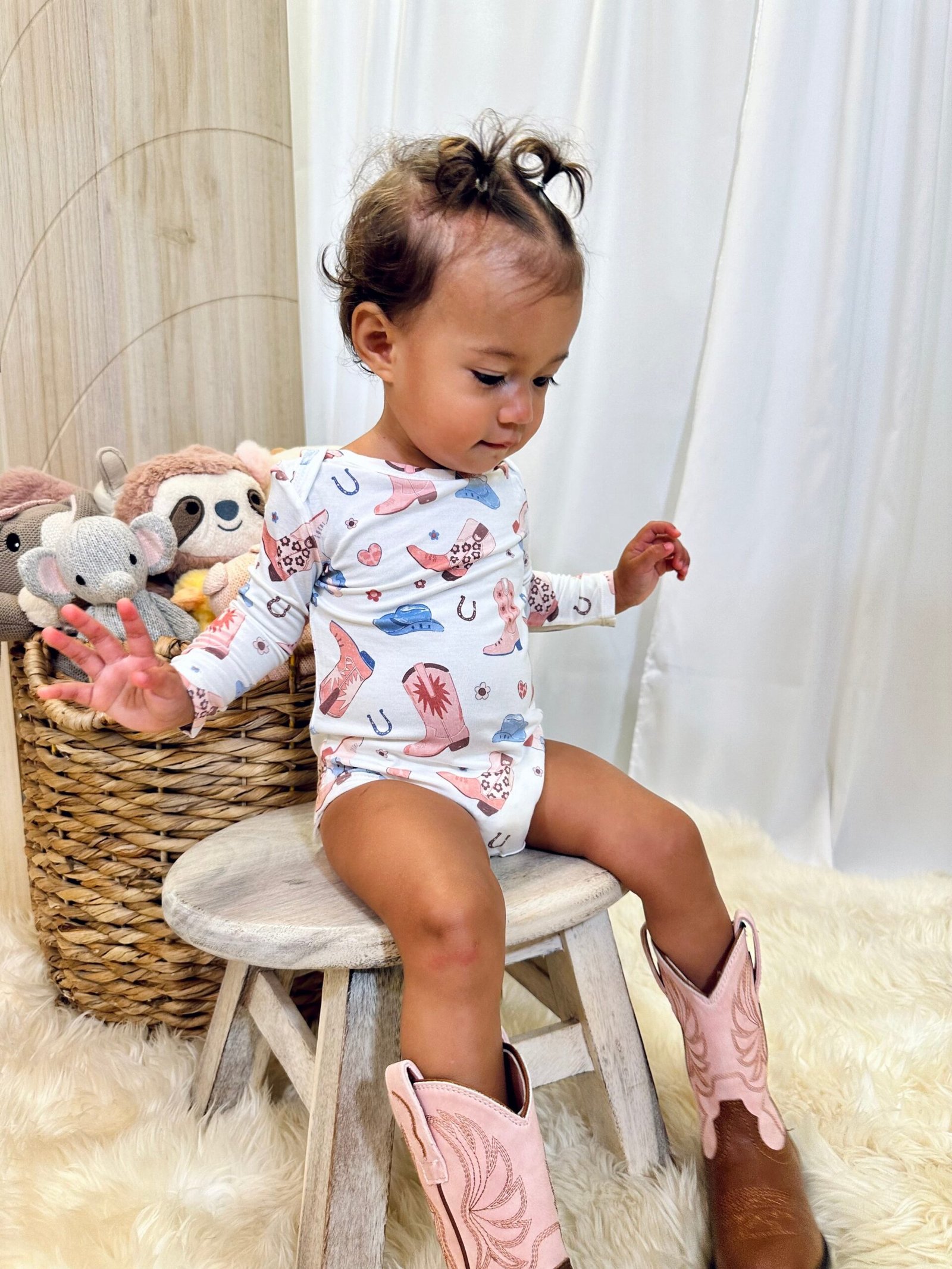 Be the first to review “Cowboy Boots – Pink Bodysuit”