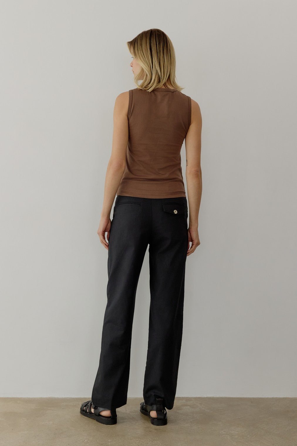 This top is a fitted sleeveless top with a twisted strap detail. The fitted bodice and mid-weight cotton jersey offer comfort and ease of wear for both casual and dressy occasions